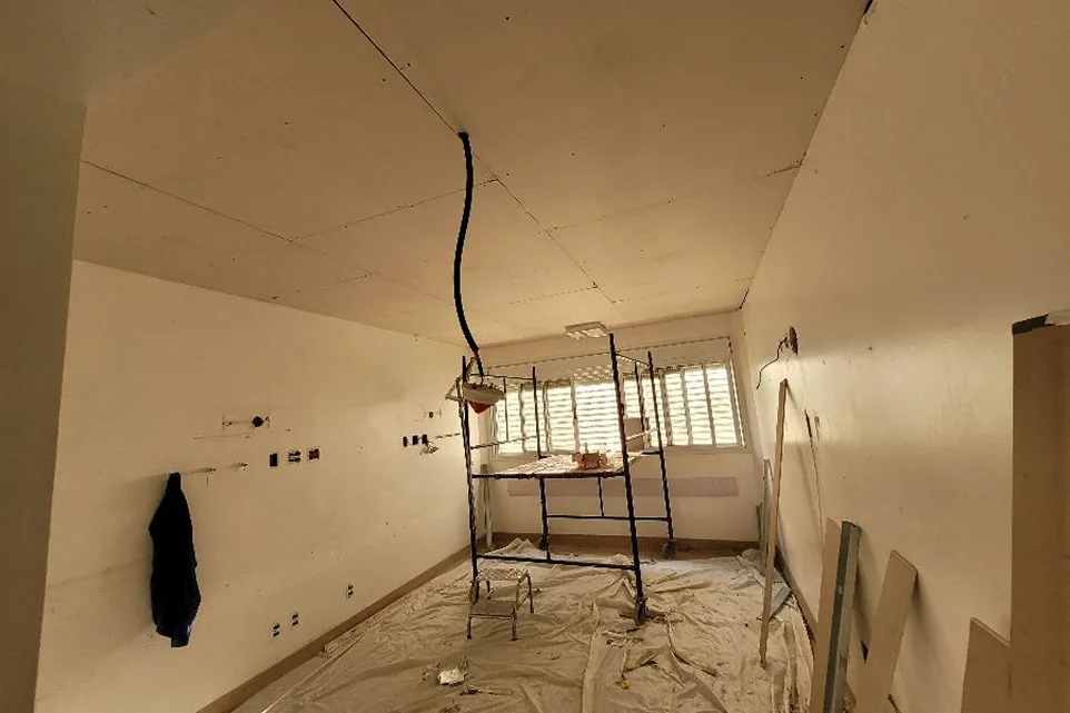 Como a unidade permanecia em funcionamento durante a obra, foram adotados cuidados rigorosos com isolamento das áreas, controle de ruídos e limpeza constante, garantindo a segurança e o mínimo impacto às demais atividades do hospital. Além disso, foi executado um mezanino metálico projetado para suportar novos equipamentos de insuflamento e ventilação, fundamentais para a operação dos quartos especializados. O resultado foi a entrega de uma área totalmente adaptada às novas exigências médicas, pronta para uso.
